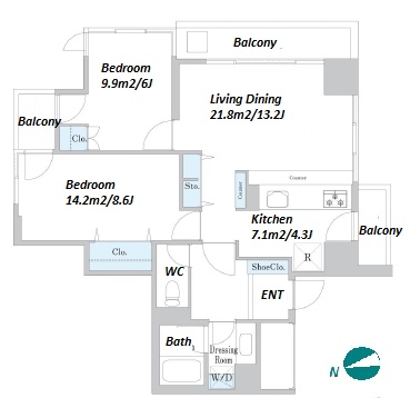 | Unit no. | BR | Size(㎡) | Rent(JPY) | |||