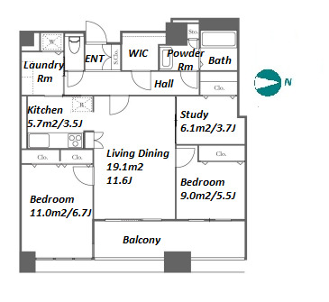 | Rent | JPY 375,000 / month |