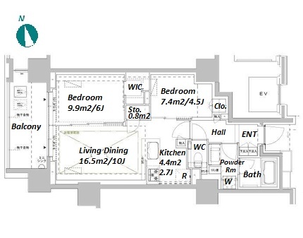 2 BR・55.6 m²