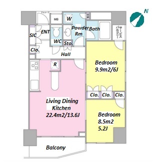 2 BR・62.7 m²