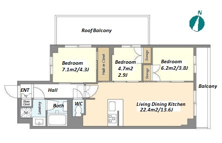 3 BR・61.6 m²