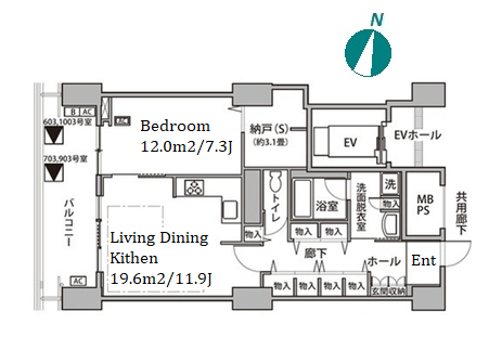 | Unit no. | BR | Size(㎡) | Rent(JPY) |