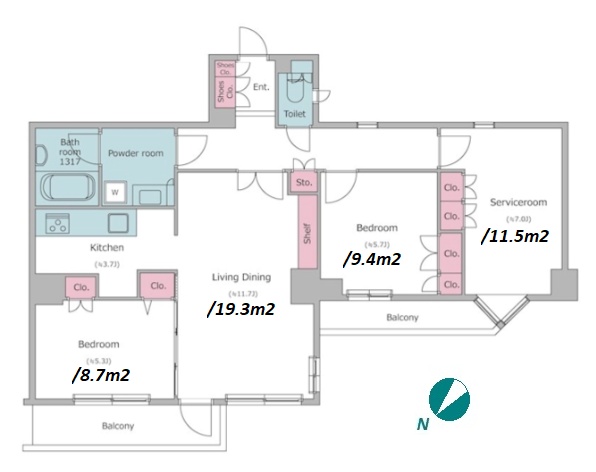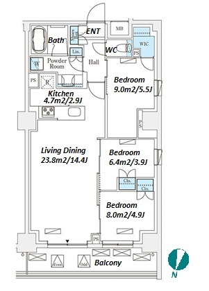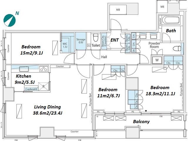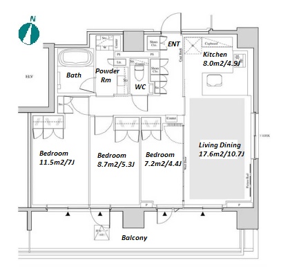 | Unit no. | BR | Size(㎡) | Rent(JPY) | |||