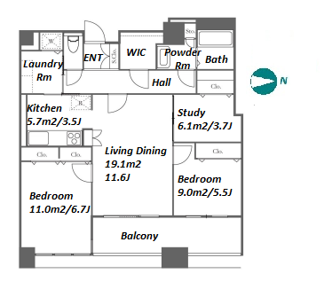 | Unit no. | BR | Size(㎡) | Rent(JPY) | |||