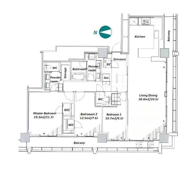 | Unit no. | BR | Size(㎡) | Rent(JPY) | |||