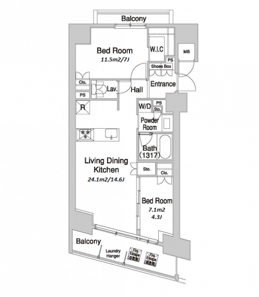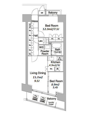 | Unit no. | BR | Size(㎡) | Rent(JPY) | |||