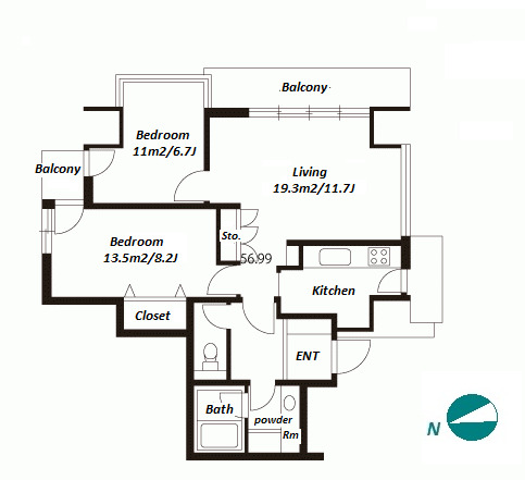2 BR・63.13 m²
