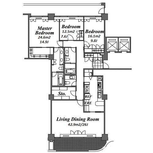 | Unit no. | BR | Size(㎡) | Rent(JPY) | |||