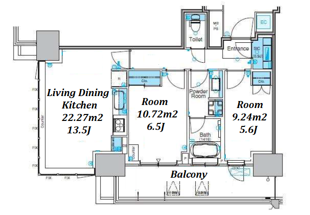 | Unit no. | BR | Size(㎡) | Rent(JPY) | |||
