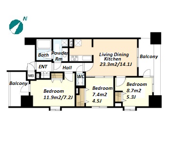 | Unit no. | BR | Size(㎡) | Rent(JPY) | |||