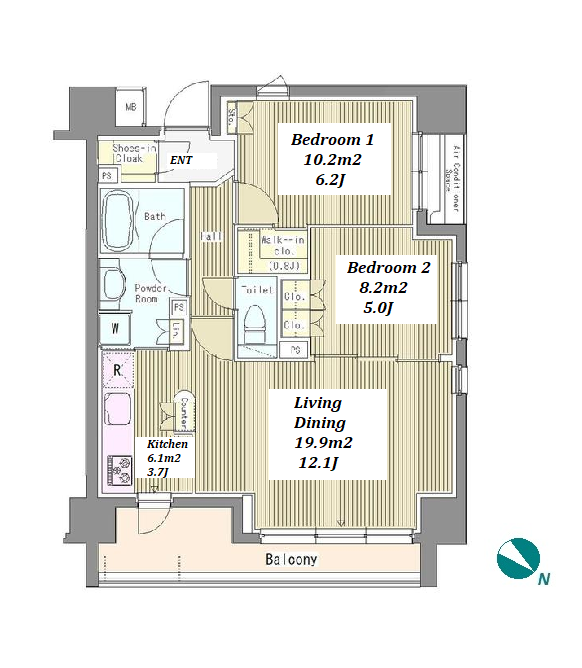 | Unit no. | BR | Size(㎡) | Rent(JPY) | |||