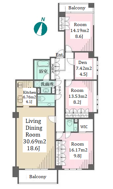 Unit no. | BR | Size(㎡) | Rent(JPY) | |||