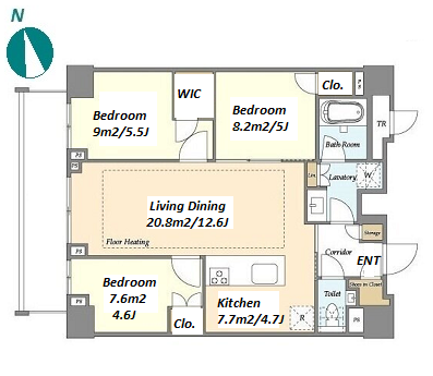 | Unit no. | BR | Size(㎡) | Rent(JPY) | |||