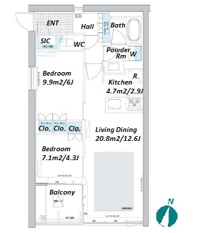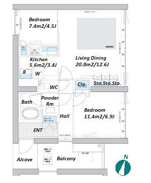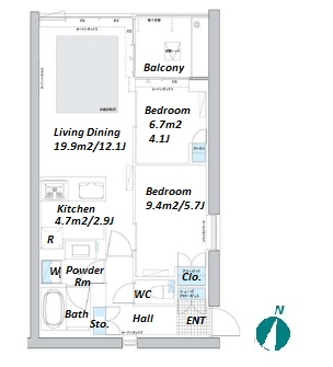 | Unit no. | BR | Size(㎡) | Rent(JPY) | |||