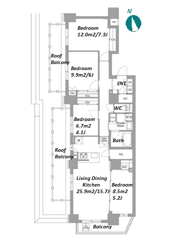 | Unit no. | BR | Size(㎡) | Rent(JPY) | |||