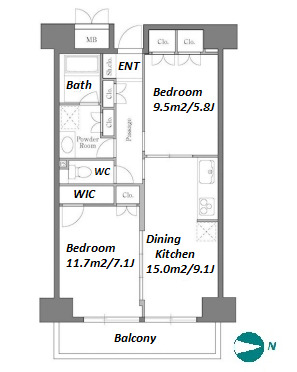 2 BR・61.01 m²