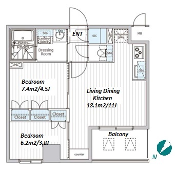 2 BR+J・65.54 m²