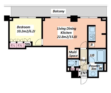 1 BR・34.3 m²