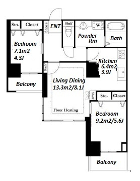 2 BR・64.68 m²