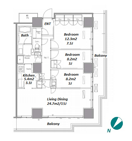 3 BR・82.4 m²