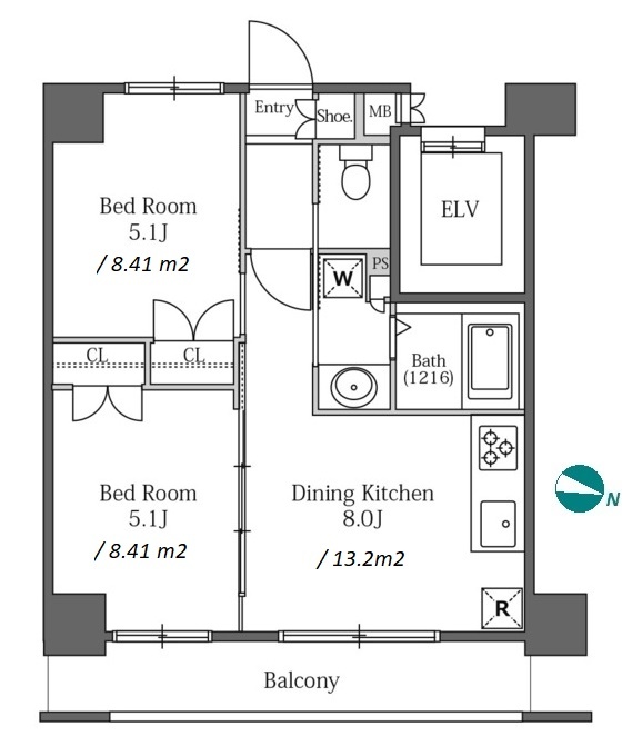 2 BR・61.01 m²