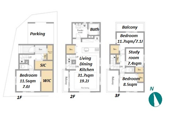 Bedroom(s): 3 BR+S