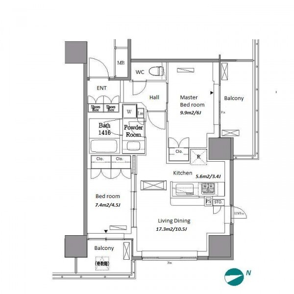 2 BR・64.34 m²