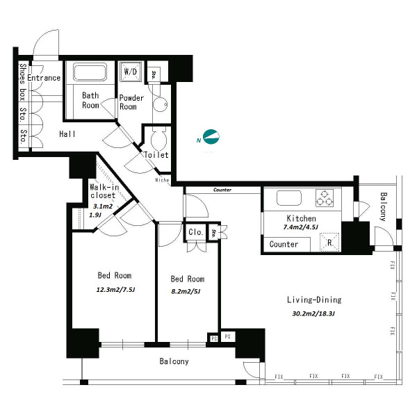 2 BR・74.38 m²