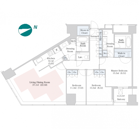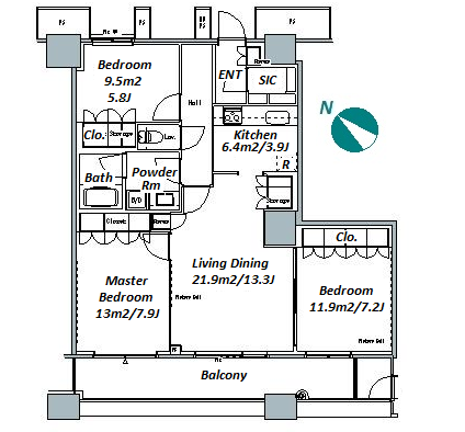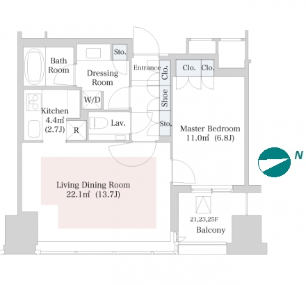 | Unit no. | BR | Size(㎡) | Rent(JPY) | |||