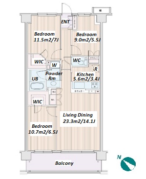 | Unit no. | BR | Size(㎡) | Rent(JPY) | |||