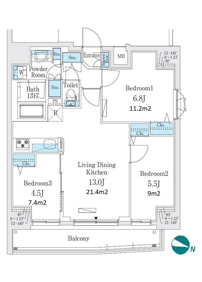 | Unit no. | BR | Size(㎡) | Rent(JPY) | |||
