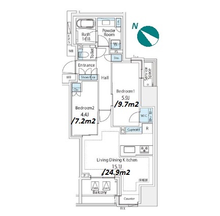 2 BR・56.46 m²