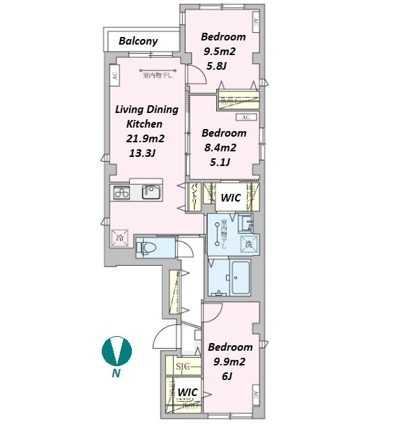 3 BR・66.8 m²