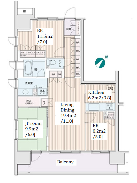 3 BR・72.6 m²