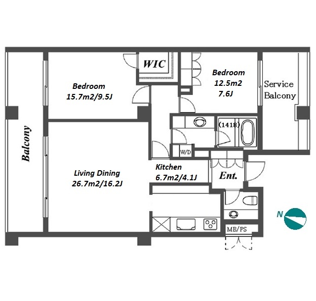 | Bedroom(s) | 2 BR |