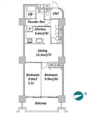 2 BR・54 m²