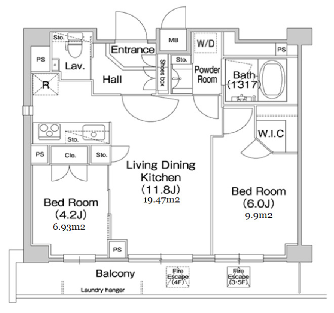 2 BR・63.6 m²