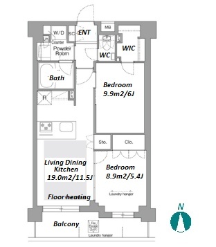 2 BR・53.7 m²