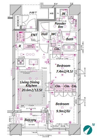 2 BR・62.7 m²