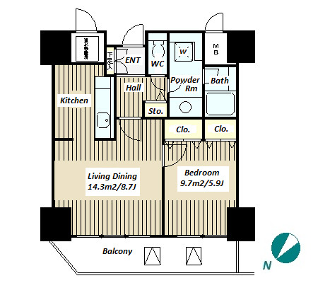 1 BR・57.4 m²