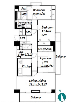 | Unit no. | BR | Size(㎡) | Rent(JPY) | |||