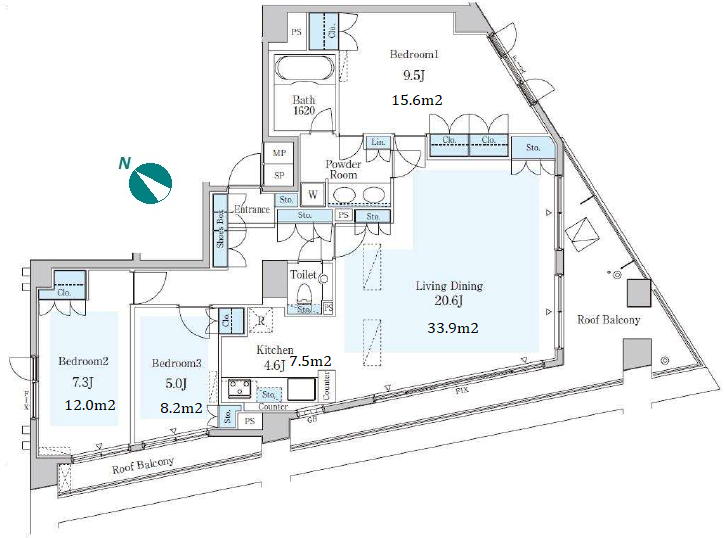 | Unit no. | BR | Size(㎡) | Rent(JPY) | |||